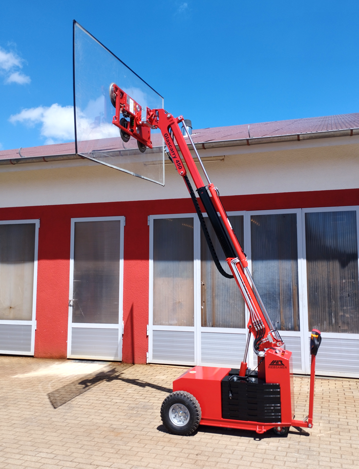 Der Glascarry 450 ist unser neuer Pick&Carry Glaslifter. Ausgestattet mit einem separat nutzbaren batteriebetriebenen Vakuumsauger können Glasscheiben bis zu 450 kg transportiert und montiert werden.